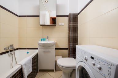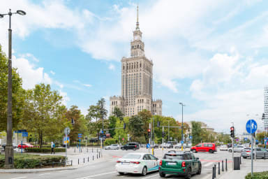Rondo ONZ Downtown Apartment to apartament położony w samym sercu miasta, a dokładniej w jednej z najpopularniejszych i najstarszych dzielnic Warszawy - Śródmieściu. Dzielnica jest bardzo dobrze skomunikowana, co powoduje, że miejsce to jest świetną bazą wypadową do wielokrotnych wycieczek po mieście. Pomimo lokalizacji w centrum miasta, mieszkanie jest ciche i sprzyja wypoczynkowi. Park Świętokrzyski jest otoczony zielenią, co czyni go doskonałym miejscem do spacerowania, piknikowania czy po prostu relaksowania się na łonie natury. W okolicy znajduje się ogromna ilość atrakcji kulturalnych, galerii, czy muzeów, a także Browary Warszawskie, co sprawia, że mieszkańcom tej dzielnicy trudno jest się nudzić. Niecałe 10 minut spacerem dzieli nas od Pałacu Kultury i Nauki oraz centrum handlowego Złote Tarasy. Jedną z głównych atrakcji Pałacu Kultury i Nauki jest punkt widokowy, znajdujący się na 30 piętrze budynku, na wysokości około 114 metrów. Taras widokowy oferuje spektakularne panoramiczne widoki na całą Warszawę. W pogodne dni można stąd zobaczyć nie tylko centrum miasta, ale także odległe przedmieścia i okoliczne tereny. W najbliższej okolicy znaleźć można wiele atrakcji turystycznych wartych odwiedzenia takich jak Fabryka Norblina, Centrum Pieniądza NBP, Zachęta - Narodowa Galeria Sztuki, Teatr Kwadrat, Teatr 6 Piętro i wiele innych. Sąsiedztwo apartamentu jest pełne sklepów (Carrefour Express, Hubiz, Żabka), kawiarni (Kawiarnia La Lucy, Starbucks), restauracji (Restauracja HEKTOR1970,Trattoria Ti Amo, City SAM, Restauracja Libańska Fenicja), lokali rozrywkowych oraz punktów usługowych. Lokalizacja sprzyja swobodnemu przemieszczeniu się ze względu na liczne przystanki autobusowe i tramwajowe (Rondo ONZ, Aleja Jana Pawła II, Plac Grzybowski) oraz stacja metra (Rondo ONZ, Świętokrzyska).
