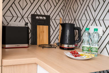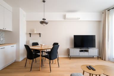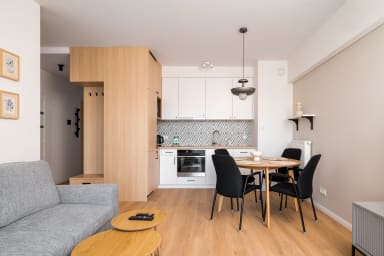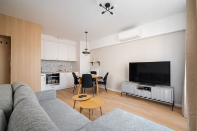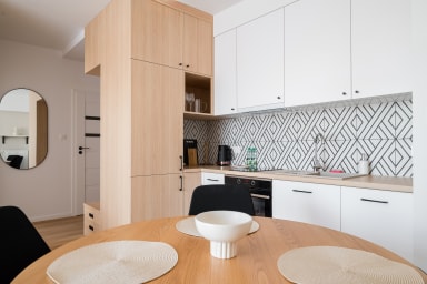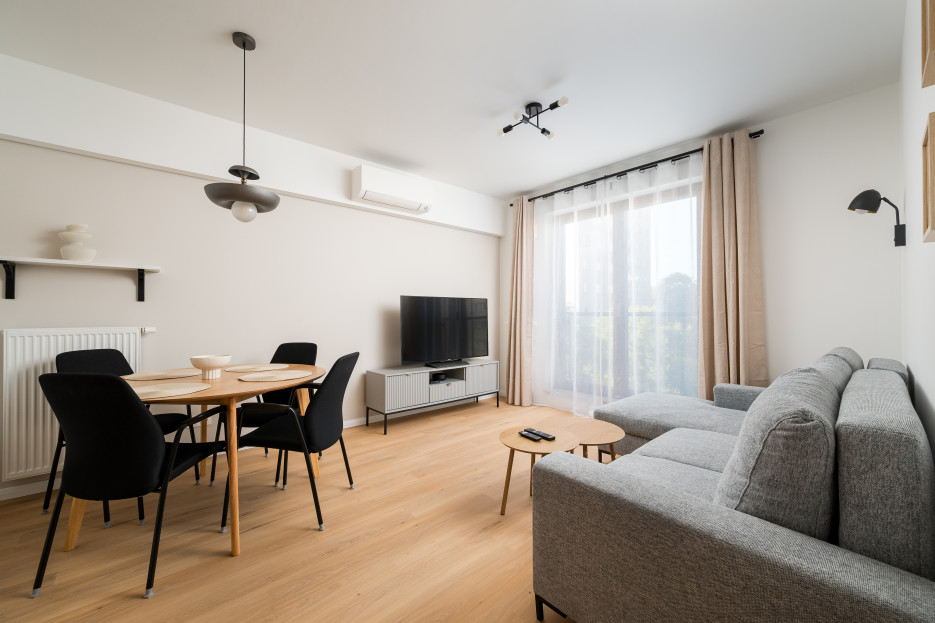 Racławicka 7 Superior Apartment posiada stylowo urządzony salon z rozkładaną kanapą i aneksem kuchennym, sypialnię z wygodnym łóżkiem małżeńskim oraz łazienkę. Goście mają do dyspozycji szereg praktycznych udogodnień, w tym darmowe WiFi, telewizję naziemną, pralkę, żelazko, suszarkę do włosów, zmywarkę, kuchenkę indukcyjną, piekarnik, toster, lodówkę z zamrażarką, czajnik oraz akcesoria kuchenne. Apartament posiada również klimatyzację, co daje niezwykły komfort, zwłaszcza w trakcie upalnych dni.