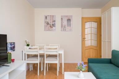 Olszowa 8 Harmony Apartment to apartament położony w popularnej dzielnicy - Praga Północ, tuż przy rzece Wiśle oraz moście pieszo-rowerowym na Pragę. Most pieszo-rowerowy na Pragę to nowa, wyjątkowa inwestycja w Warszawie, która łączy lewobrzeżną część miasta z malowniczą Pragą. Ten nowoczesny obiekt jest doskonałym miejscem zarówno dla pieszych, jak i rowerzystów, oferując przepiękne widoki na rzekę Wisłę oraz panoramę stolicy. Most ten stał się nie tylko funkcjonalnym elementem infrastruktury, ale także popularnym miejscem spotkań i rekreacji. Od strony Pragi, tereny przy moście są bogate w zielone przestrzenie i oferują wiele możliwości spędzania wolnego czasu. Wśród najbardziej popularnych miejsc znajduje się plaża nad Wisłą, gdzie można odpocząć, opalać się, a nawet organizować pikniki. Dla osób aktywnych dostępne są ścieżki biegowe i rowerowe, które biegną wzdłuż rzeki, oferując piękne widoki na wodę i otaczającą przyrodę. Nieopodal apartamentu znajduje się Park Praski zachwyca bogatą roślinnością, licznymi drzewami i kwiatami. Można tu znaleźć wiele alejek, trawników i zakątków do spacerowania jak i odpoczynku. Obok Parku można bezpośrednio udać się do Miejskiego Ogrodu Zoologicznego, w którym znajduje się około 500 różnych gatunków zwierząt. Zaledwie 20 minut spacerem dzieli nas od Stadionu PGE Narodowy, który organizuje liczne wydarzenia sportowe, ale również rozrywkowe. Stadion oferuje również wycieczki, na których można wejść na murawę, zobaczyć szatnię piłkarzy, loże VIP i posłuchać ciekawostek na temat samego stadionu. Nieopodal znajduje się Centrum Praskie Koneser, Muzeum Warszawskiej Pragi, Muzeum Polskiej Wódki oraz teatr Mała Warszawa, a także rzeka Wisła i Praska Plaża Miejska. W najbliższej okolicy znajdą Państwo rozmaite sklepy, kawiarnie, restauracje, lokale rozrywkowe, punkty usługowe, a także centrum handlowe - Galeria Wileńska. Lokalizacja apartamentu sprzyja wygodnemu przemieszczaniu się po mieście, ze względu na liczne przystanki autobusowe i tramwajowe (Os. Panieńska, Sierakowskiego, Park Praski, Metro Stadion Narodowy), stacje metra (Wileński, Stadion Narodowy) oraz stacje kolejowe (Warszawa Wileńska, Warszawa Stadion).