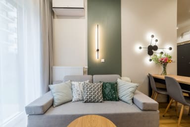 Stacja Jeżyce Superior Apartment #B to niezwykle stylowo urządzony apartament, który posiada salon z rozkładaną kanapą i aneksem kuchennym, sypialnię z wygodnym łóżkiem małżeńskim, łazienkę oraz ogródek, gdzie goście będą mogli odpocząć oraz napić się porannej kawy, czy wieczornej lampki wina. Oferuje szereg najwyższej klasy udogodnień, w tym bezpłatne Wi-Fi, telewizor, pralkę, suszarkę do włosów, żelazko, zmywarkę, kuchenkę indukcyjną, piekarnik, lodówkę z zamrażarką, toster, ekspres do kawy, czajnik oraz akcesoria kuchenne. Ponadto apartament posiada klimatyzację, co daje niezwykły komfort, zwłaszcza w trakcie upalnych dni. Do dyspozycji Gości pozostaje również miejsce postojowe w garażu podziemnym.