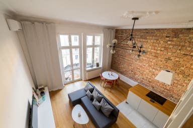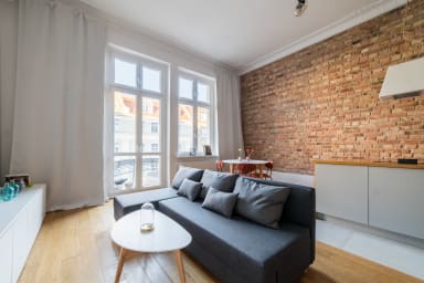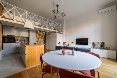 Dzięki wysokim sufitom i loftowemu charakterowi, wnętrze zyskuje przestronność i wyjątkowy klimat, a bliskość Parku Wilsona sprawia, że apartament stanowi doskonałą bazę wypadową do zwiedzania i odpoczynku.