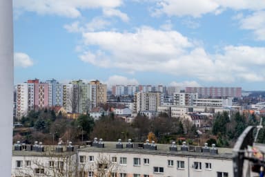 Apartament znajduje się w świetnie skomunikowanej okolicy. W pobliżu dostępne są liczne przystanki autobusowe i tramwajowe, które umożliwiają szybkie przemieszczanie się po mieście. Stacja kolejowa Poznań Górczyn oddalona jest o zaledwie kilka minut jazdy, co ułatwia dalsze podróże. Dojazd do poznańskiego Starego Rynku zajmuje około 20 minut, a na miejscu czeka szeroki wybór restauracji, kawiarni i pubów, a także historyczne atrakcje, takie jak Ratusz Poznański, koziołki na wieży ratuszowej, czy malownicze kamienice. To także doskonałe miejsce na wieczorne spacery i odkrywanie uroków miasta.