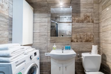 Do dyspozycji gości jest szeroki zakres udogodnień najwyższej klasy, w tym bezpłatne Wi-Fi, telewizor, suszarka do włosów, żelazko, pralka, lodówka z zamrażarką, piekarnik, kuchenka, czajnik elektryczny oraz komplet akcesoriów kuchennych, zapewniających wygodę i swobodę podczas pobytu.