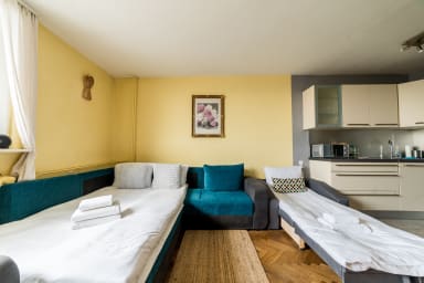 Grunwald Arciszewskiego Comfort Studio to komfortowe studio, idealne na pobyt zarówno krótko-, jak i długoterminowy. Apartament oferuje przestronny salon z rozkładaną, dwuosobową kanapą oraz jednoosobowym fotelem rozkładanym, aneks kuchenny, łazienkę, a także balkon z przyjemnym widokiem.