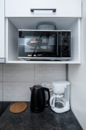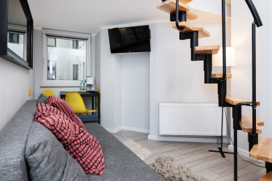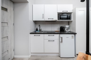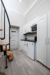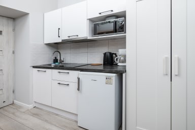 Mielczarskiego 16 Residence Studio #1B to przytulnie urządzony apartament, który posiada salon z rozkładana kanapą, aneksem kuchennym, materac na antresoli oraz łazienkę. Goście mają do dyspozycji szereg praktycznych udogodnień, w tym pralkę, żelazko, suszarkę do włosów, lodówkę z zamrażarką, kuchenkę elektryczną, mikrofalówkę, ekspres przelewowy, czajnik oraz akcesoria kuchenne.