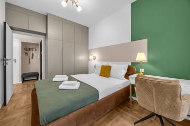 Namysłowska Superior Apartment to apartament położony w popularnej dzielnicy - Praga Północ, tuż przy samym Parku Praskim. Park Praski zachwyca bogatą roślinnością, licznymi drzewami i kwiatami. Można tu znaleźć wiele alejek, trawników i zakątków do spacerowania jak i odpoczynku. Obok Parku można bezpośrednio udać się do Miejskiego Ogrodu Zoologicznego, w którym znajduje się około 500 różnych gatunków zwierząt. Zaledwie 3 kilometry dzieli nas od Stadionu PGE Narodowy, który organizuje liczne wydarzenia sportowe, ale również rozrywkowe. Stadion oferuje również wycieczki, na których można wejść na murawę, zobaczyć szatnię piłkarzy, loże VIP i posłuchać ciekawostek na temat samego stadionu. Nieopodal znajduje się Centrum Praskie Koneser, Muzeum Warszawskiej Pragi, Muzeum Polskiej Wódki oraz teatr Mała Warszawa, a także rzeka Wisła i Praska Plaża Miejska. W najbliższej okolicy znajdą Państwo rozmaite sklepy, restauracje, kawiarnie oraz lokale rozrywkowe, a także centrum handlowe - Galeria Wileńska oraz Bazar Namysłowska. Lokalizacja apartamentu sprzyja wygodnemu przemieszczaniu się po mieście, ze względu na liczne przystanki autobusowe i tramwajowe (Bródnowska, Szymanowskiego, Darwina), stacje metra (Wileński, Szwedzka) oraz stacje kolejowe (Warszawa Wileńska).