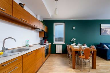 Tauron Arena Homely Apartment to apartament położony w znakomitej lokalizacji, niecałe 900 metrów od hali widowiskowej Tauron Arena, organizującej wiele koncertów i wydarzeń sportowych. Tuż obok hali znajdują się rozległe tereny zielone - Park Lotników Polskich. Park oferuje malownicze aleje spacerowe, z których jedna nosi nazwę Alei Lotników Polskich. To idealne miejsce na spacery, jogging czy rodzinne wycieczki. Park zapewnia tereny rekreacyjne, w tym plac zabaw dla dzieci, co sprawia, że jest to również przyjazne miejsce dla rodzin. W obrębie parku znajduje się Staw Bagry, który dodaje uroku otoczeniu. Można tu spotkać ludzi spacerujących wzdłuż brzegu stawu czy też relaksujących się na łonie natury. Dla miłośników aktywnego wypoczynku dostępne są również ścieżki rowerowe, zachęcające do przejażdżek rowerowych w otoczeniu zieleni. W najbliższej okolicy znaleźć można rozmaite sklepy, kawiarnie, restauracje, punkty usługowe oraz lokale rozrywkowe. Apartament jest świetnie skomunikowany ze względu na znajdujące się w pobliżu liczne przystanki autobusowe i tramwajowe (Meissnera, Tauron Arena). Dzięki temu Goście w łatwy sposób mogą dostać się do wszelkich atrakcji oferowanych przez Kraków.