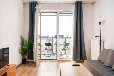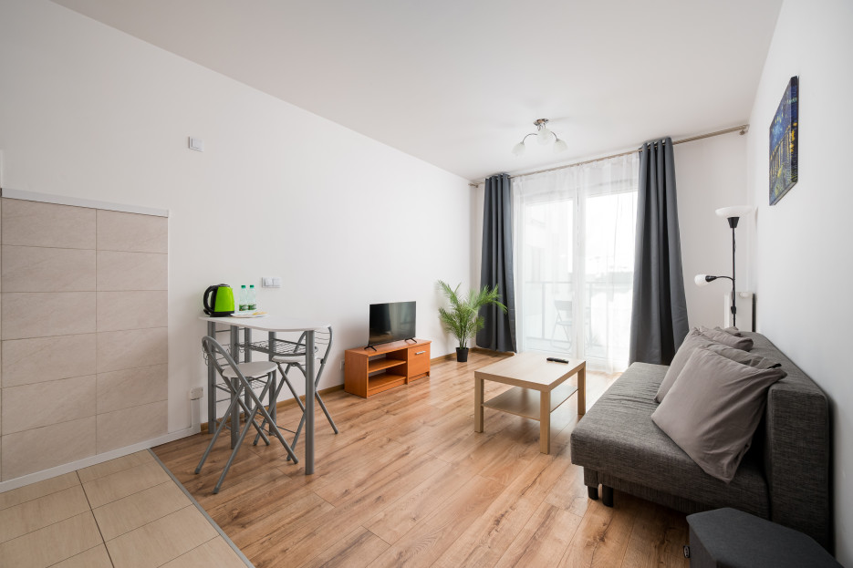 Bokserska Apartment with FREE Parking posiada salon z rozkładaną kanapą i aneksem kuchennym, sypialnię z rozkładaną kanapą, łazienkę oraz przestronny balkon, gdzie goście będą mogli odpocząć oraz napić się porannej kawy, czy wieczornej lampki wina. Oferuje on szereg najwyższej klasy udogodnień, w tym darmowe WiFi, suszarkę do włosów, żelazko, pralkę, lodówkę z zamrażarką, kuchenkę indukcyjną, mikrofalówkę, toster, czajnik oraz akcesoria kuchenne. Do dyspozycji Gości pozostaje również miejsce postojowe w garażu podziemnym.