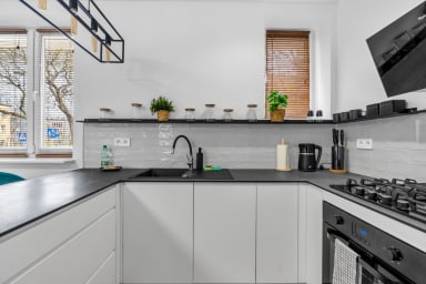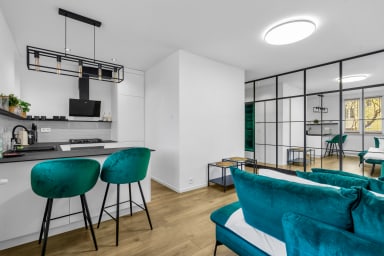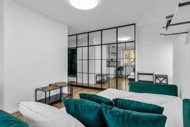 Warszawa Koło Malachite Studio to stylowo urządzony apartament, który posiada salon z rozkładaną kanapą i aneksem kuchennym, łazienkę oraz balkon, gdzie goście będą mogli odpocząć oraz napić się porannej kawy, czy wieczornej lampki wina. Goście mają do dyspozycji szereg praktycznych udogodnień, w tym darmowe WiFi, rzutnik, żelazko, pralka, suszarka do włosów, zmywarka, lodówka z zamrażarką, piekarnik, czajnik oraz akcesoria kuchenne.