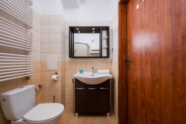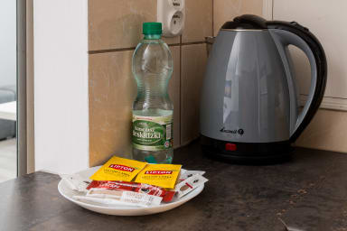 Na dobry początek pobytu przygotowano zestaw podstawowych artykułów higienicznych — papier toaletowy, mydło, szampon oraz żel pod prysznic. Należy pamiętać, że ilość tych produktów jest ograniczona i przewidziana na pierwsze dni pobytu. W celu zapewnienia pełnego komfortu zalecamy wcześniejsze zaopatrzenie się w dodatkowe produkty według własnych potrzeb.